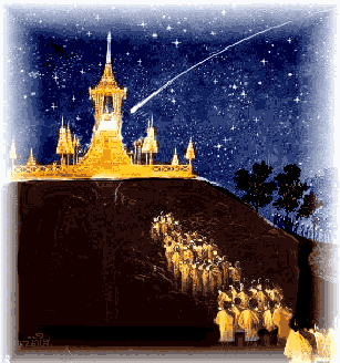 พระยามารน้อมกายก้มกราบถวายนมัสการพระมหาเถระ แล้วลากลับสู้เทวสถานวิมานของตน......