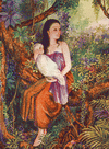 นางยักษิณีตนหนึ่งเดินทางผ่านมาเห็นเด็กอ่อนนั่งอยู่คิดอยากกิน
