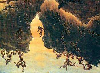 ครั้นตะกายไปพบปะกันเข้า ก็ตั้งหน้าตั้งตาแต่จะตะครุบกันกินด้วยความสำคัญผิดคิดว่าเป็นภักษาหาร แล้วก็กอดคอพากันพลัดตกลงไปในทะเลน้ำกรดเย็นจนถึงแก่ความตาย และแล้วก็กลับเป็นขึ้นมามาตามเดิมอีก พวกเขาเฝ้าเวียนตายเวียนเกิดด้วยความทุกข์ทรมานอย่างแสนสาหัสอยู่เช่นนี้ไม่มีวันสิ้นสุด โน่นแหละชั่วพุทธันดรหนึ่งนั้นแล จึงจะพ้นทุกข์โทษไปจากขุมนรกโลกันต์นี้
