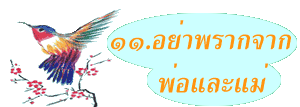เมื่อแม่นกกลับมาป้อนอาหารให้ลูก ไม่พบลูกของมัน ก็เสียใจ แม่นกจะโผบินขึ้นไปบนอากาศจนสูง แล้วหุบปีกปล่อยตัวตกลงกระแทกพื้นตาย คนเราบางคนพยายามพรากตัวเองไปจากพ่อแม่