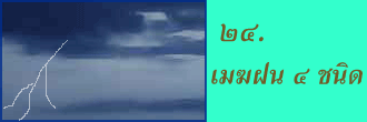 เมฆฝนซึ่งตั้งเค้าอยู่เบื้องบนอากาศนั้น มีลักษณะย่อๆ ๔ ชนิดด้วยกัน คือ