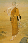 ใกล้อรุณรุ่งแล้ว ลมยามเช้าโชยมาช่างเย็นกายเย็นใจเสียกระไร พระอานนท์เถระเดินจงกรมกลับไปกลับมาต้อนรับแสงอรุโณทัยในยามเช้าของวันใหม่อยู่ท่ามกลางใน ป่าประดู่ลายแห่งนั้น ได้เวลาบิณฑบาตแล้ว........